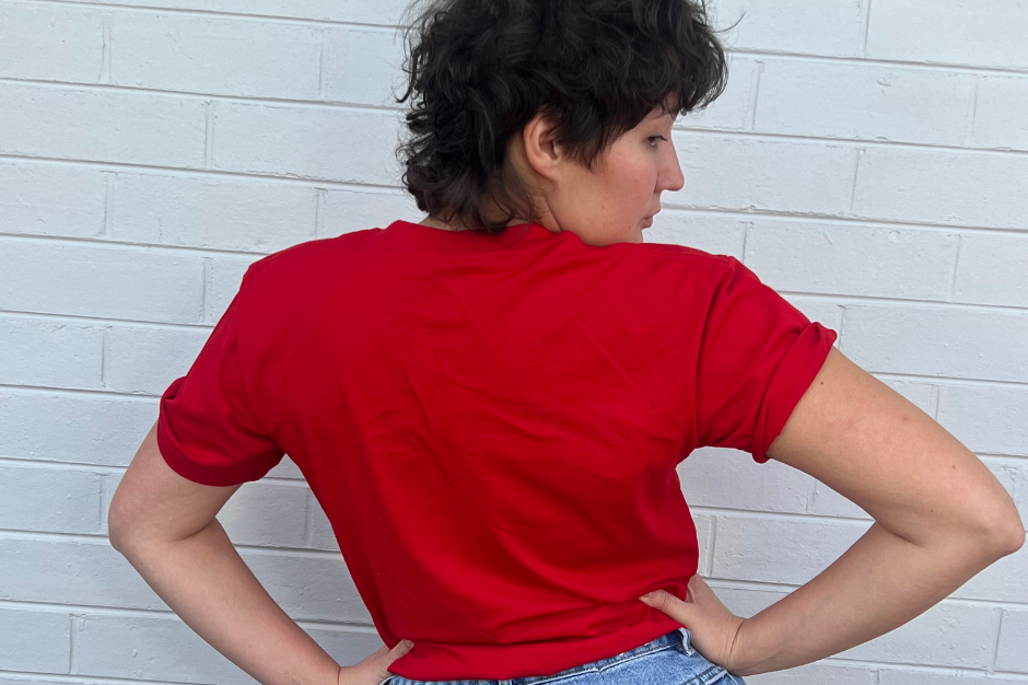 Neck ribbing, side seamed, shoulder to shoulder tape, double needle hems, preshrunk to minimise shrinkage